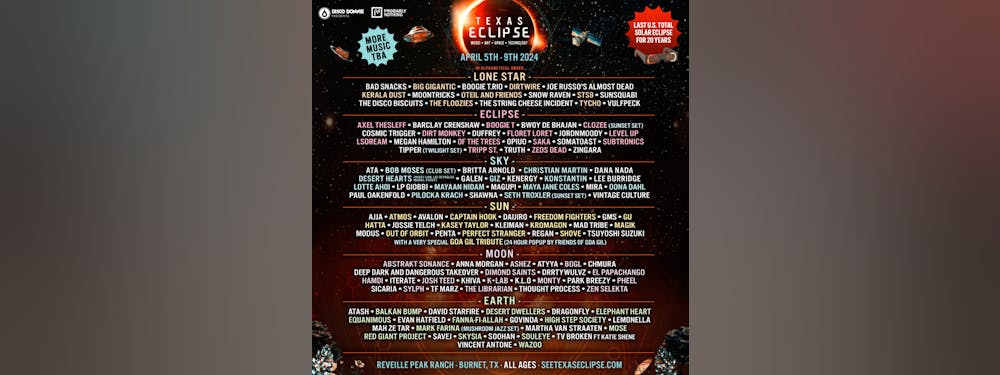 Source : www.most.orgTexas Eclipse Festival 2024: STS9, Bob Moses & LP Giobbi Lead